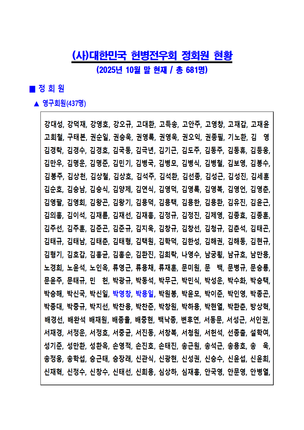 헌우회 정회원 명단(2025-10월)