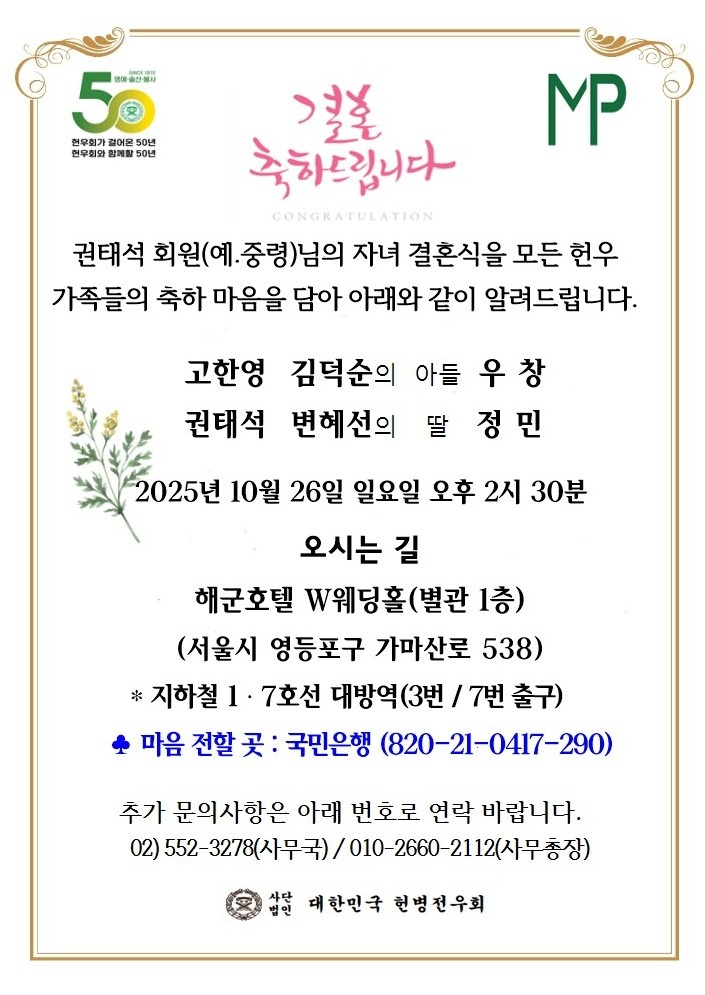 권태석 회원님 자녀 결혼
