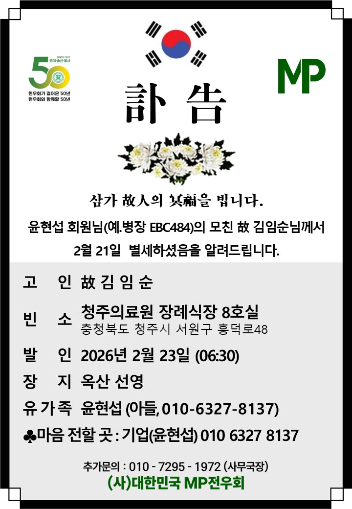 윤현섭 회원님 모친 별세